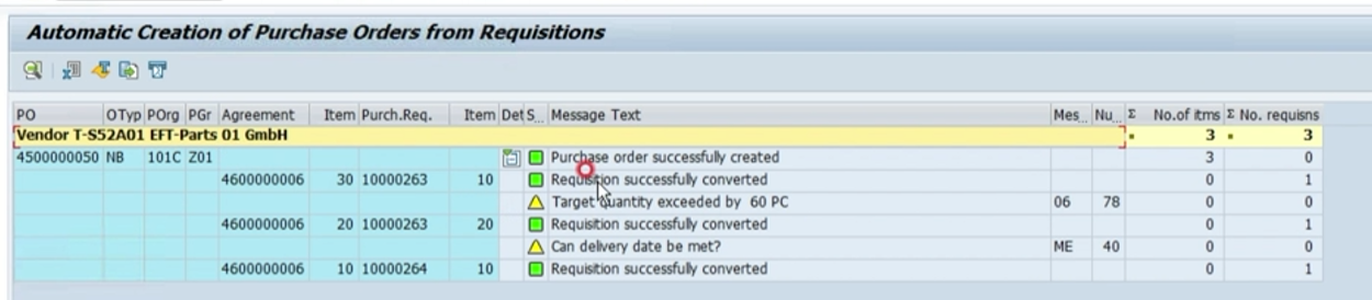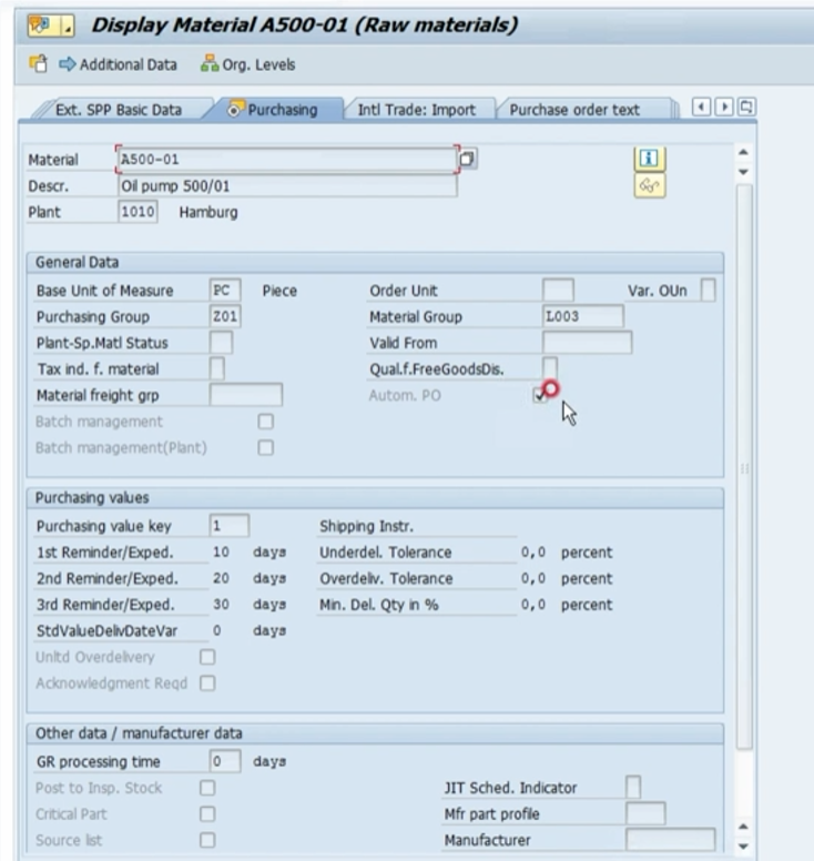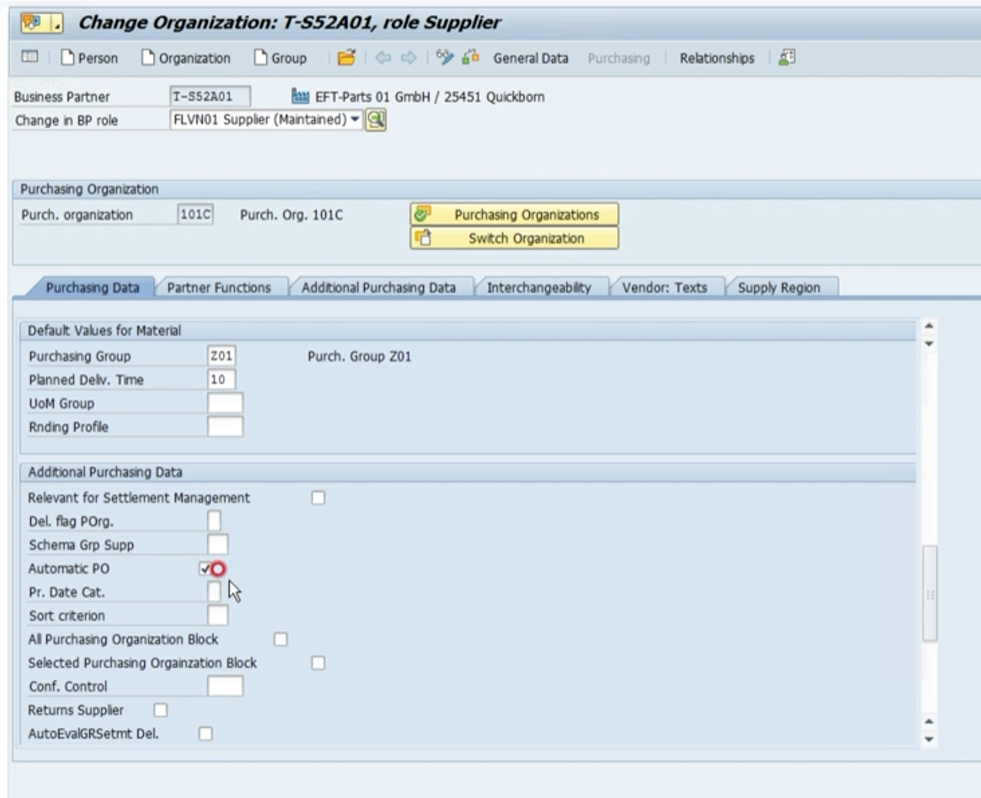 - 전제조건: BP와 자재마스터에 자동 구매오더 체크박스가 체크 되어있어야 함.