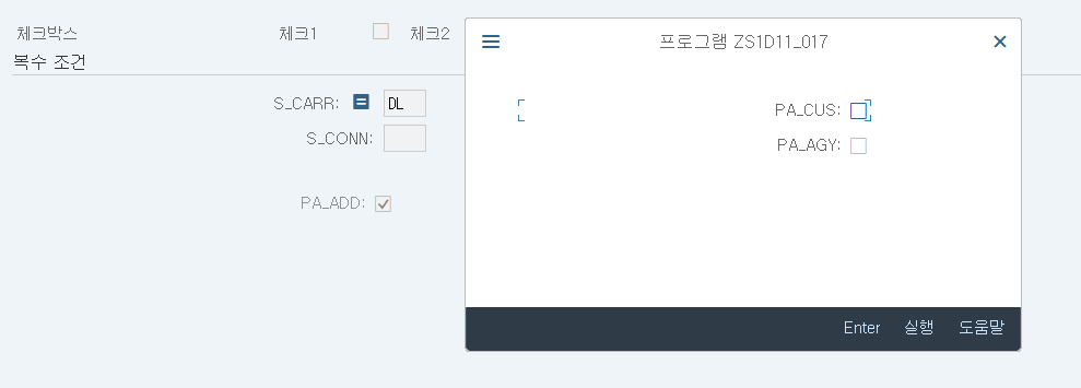먼저 파라미터와 셀렉트 옵션은 실행가능 프로그램에서만 사용이 가능하다. 모듈풀에선 사용이 불가능하다.