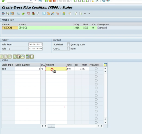 생성된 가격 조건은 견적이나 PO, Outline agreement, 인포레코드 등에서 사용됨