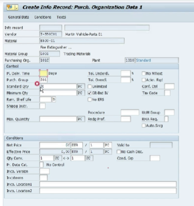 - Info update indicator : 각 구매문서 생성할때 체크가 되어있어야 인포레코드 데이터가 업데이트가 됨