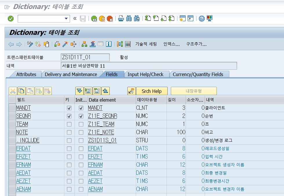 테이블 생성해보기 SE11