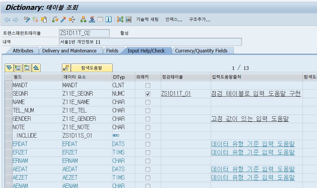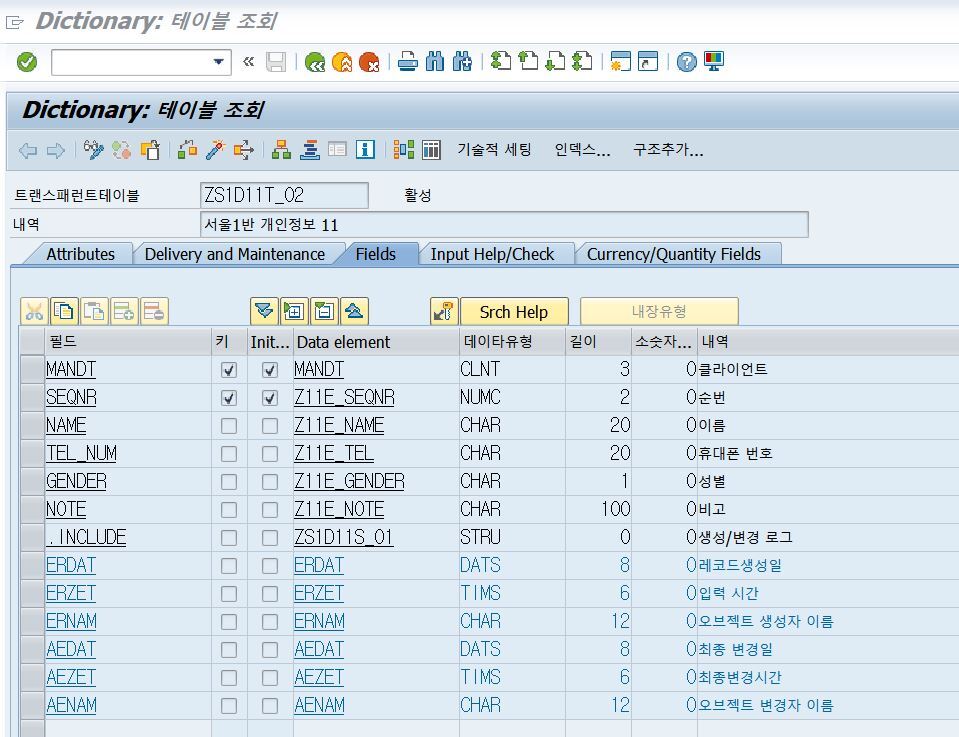 티코드 SE11 abap dictionary에서 생성한다.