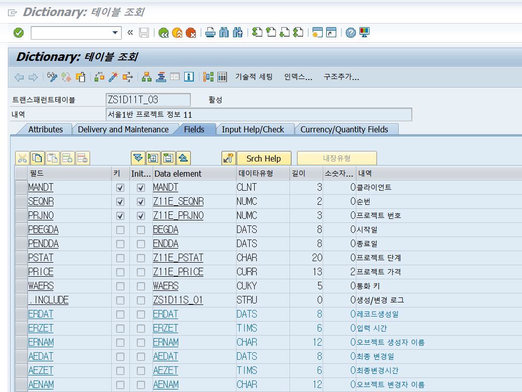 총 테이블 3개를 만든다. 3테이블의 키값은 seqnr 순번 필드로 동일하게 한다. Table, data element, domain을 생성해본다.
